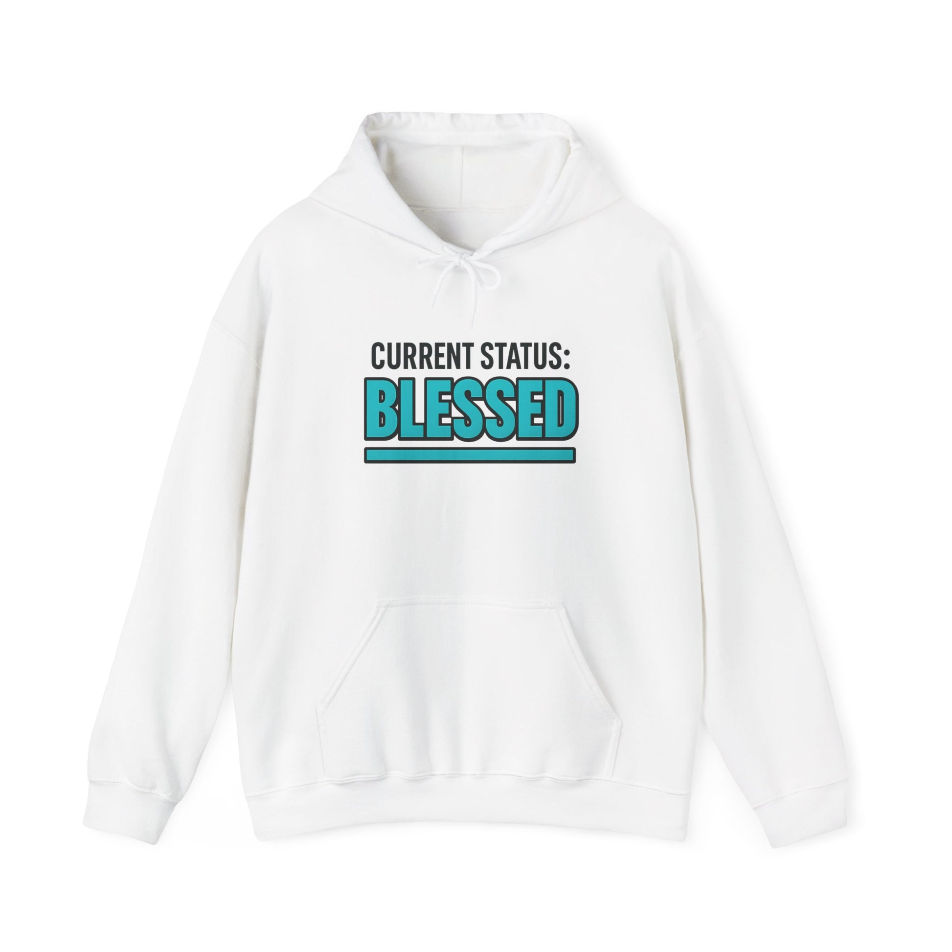 Elevate your cozy wardrobe with this Unisex Heavy Blend™ Hooded Sweatshirt. Perfect for chilly days, this sweatshirt wraps you in warmth while expressing a positive vibe with its fun "Current Status: Blessed" design. Ideal for relaxed outings, casual get-togethers, or simply lounging at home, this piece brings both comfort and style to your everyday life. It's a thoughtful gift for friends and family who appreciate uplifting messages and cozy attire. Celebrate moments of gratitude, holiday gatherings, or everyday wear with this stylish staple that resonates with those seeking comfort and positivity in their lives.